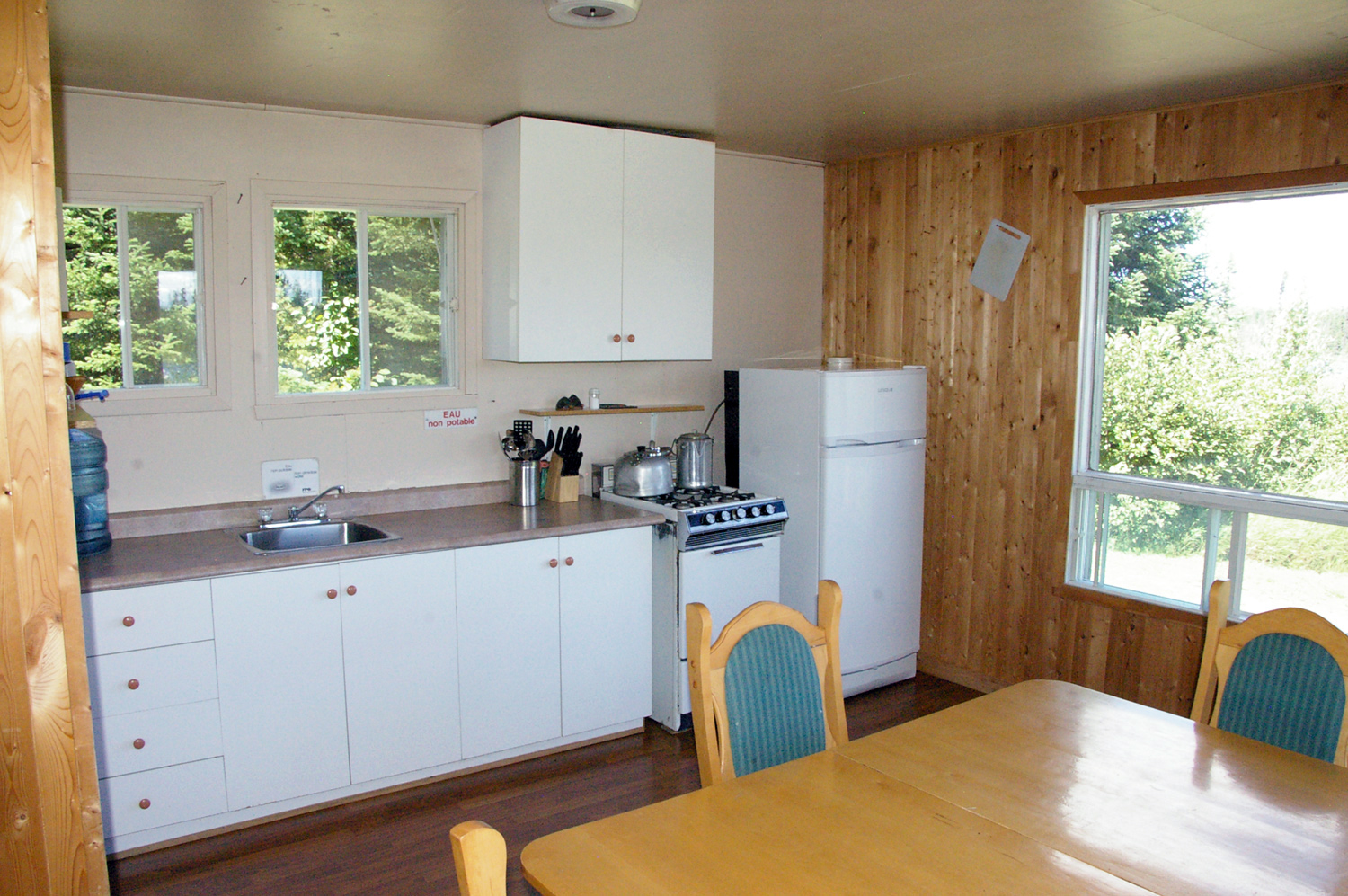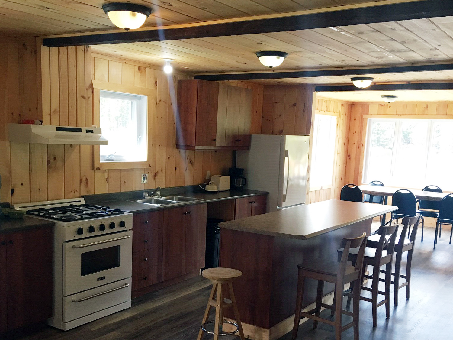 Si vous préférez l'intimité, la pourvoirie vous offre des chalets localisés en bordure de la rivière à saumons et des lacs. Tous les chalets disposent d'équipements au propane, soient : poêle, réfrigérateur et éclairage. Une fournaise ou un poêle à bois vous garantiront chaleur et confort. La cuisinette est bien équipée : vous y trouverez tout ce dont vous avez besoin. Assurez-vous d'apporter vos sacs de couchage, draps, taies d'oreiller et serviettes.